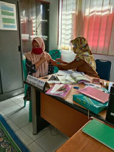 Bidan desa memberi suntikan imun kepada bumil pada kegiatan posyandu didusun sentosa-sungai segajah makmur-kubu-rohil,minggu 25/10/2020