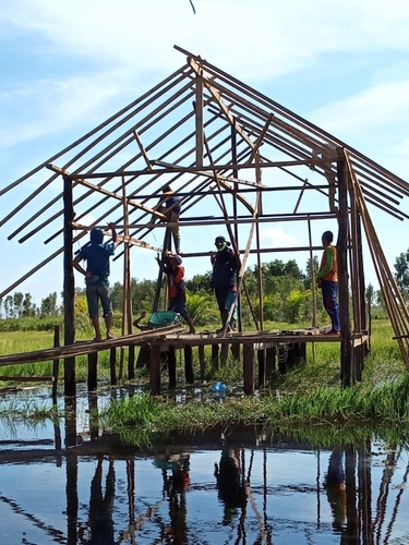 Fasdes DPG memantau kegiatan kelompok MPA Pematang Limau pembuatan pondok kerja di lokasi kegiatan demplot paludikultur Desa Pematang Limau, Kec. Seruyan Hilir, Kab. Seruyan, Kalteng, Selasa (25/10/2020).