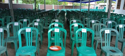 Paniltia  Dewan Perwakilan DPK menyiapkan tempat duduk anak anak TPA yang akan di wisuda di kerta Mukti,Kec; Air Sugihan, Kab; Ogan Komering llir, Sumatera Selatan 2510/2020.