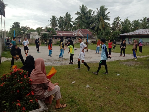 Pemanasan sebelum bertanding  oleh kedua pemuda pemudi karang taruna desa sarang burung danau kec. Jawai. Kab sambas. Kalbar.Minggu, 25/10/2020