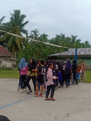 Kedua tim kesebelasan saling bersalaman setelah selesai bermain volly di Desa Sarang Burung Danau,Kec. Jawai, Kab. Sambas,Kalbar. Minggu,25/10/2020.