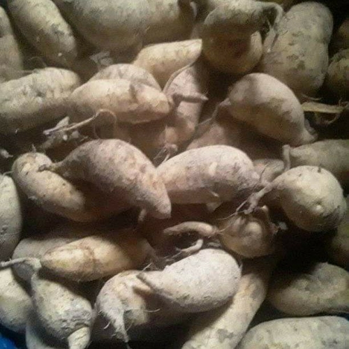 hasil panen buah ubi ibu ana lumayan banyak.desa sarang burung danau kec jawai, kab sambas, kalbar, minggu.25/10/2020