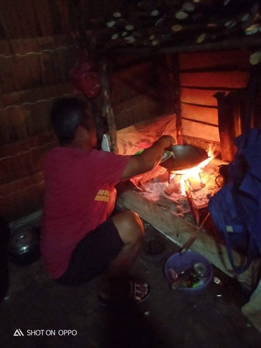 Pak Ude memasak menggunakan kayu bakar di Desa Sarang Burung Danau, Kec. Jawai,  Kab. Sambas, Kalbar. Minggu,25/10/2020.