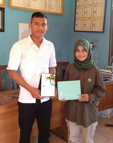 Penyerahan kalender dan poster BRG oleh Fasilitator DPG kepada Pemerintah Desa Kantan Atas, Kecamatan Pandih Batu, Kabupaten Pulang Pisau, Provinsi Kalimantan Tengah, Jum'at (01/03/2019).