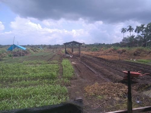Lokasi pertanian di lahan gambut Desa Pandan Sejahtera, Kab. Tanjung Jabung Timur, Jambi, Sabtu (9/3/2019).