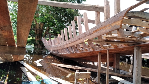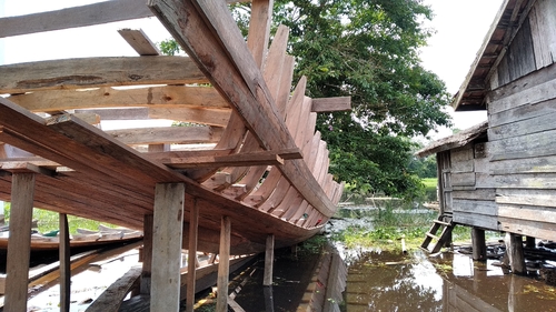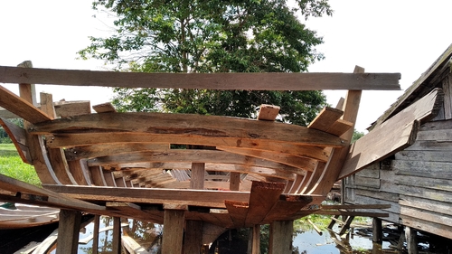 Pembuatan kapal di Sogo, Kumpeh, Muara Jambi, Jambi, Sabtu (9/3/2019).