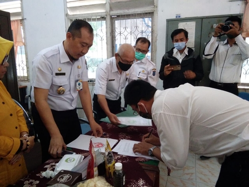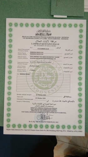 Fasdes nasrul hadri menandatangani serah terima sertifikat halal dari(MUI) untuk bandeng fresto simpang tiga abadi, di kayu agung, ogan komering ilir, sumsel (21/10/2020)