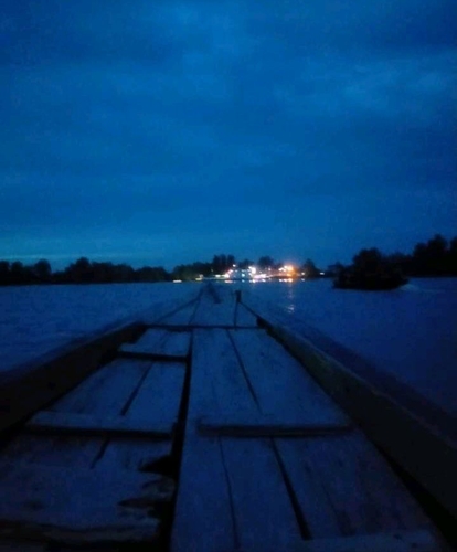 Rutinitas ibu Siti Zubaidah bolak balik dari sambas ke jawai sampai senja tiba di penyebrangam pripiay di Desa Sarang Burung Danau. Kec. Jawai. Kab. Sambas. Prov. Kalbar. Selasa (27/10/2020)
