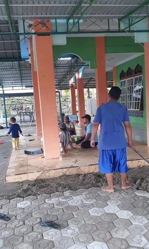 Pak Darwin sedang mengecor halaman masjid al ishlah Desa Sarang Burung Danau, Kec. Jawai. Kab. Sambas. Kalbar. Sabtu,31/10/2020