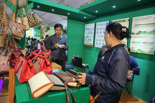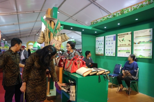 Berkunjung ke stand BRG dalam rangka Gelar Karya 2019 Kalimantan Tengah di Jalan Temanggung Tilung XIII Palangka Raya, Minggu (17/3/2019). Kegiatan pameran ini diikuti oleh berbagai instansi dan diselenggarakan dari 16-20 Maret 2019. Di stand BRG ini juga dipamerkan kerajinan berupa tas dari anyaman rotan juga disediakan photo booth.