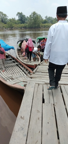 Pompong, sampan bermesin merupakan sarana transportasi antardesa seperti Desa Sungai Rukam dan Desa Jaya Bakti, Kec. Enok, Kab. Indragiri Hilir, Riau, Rabu (20/3/2019).