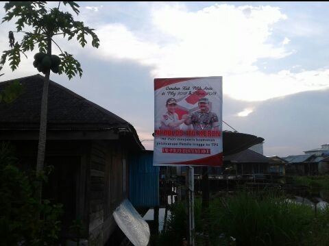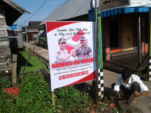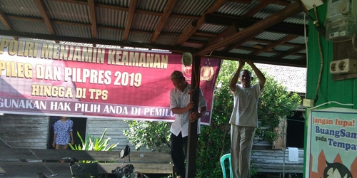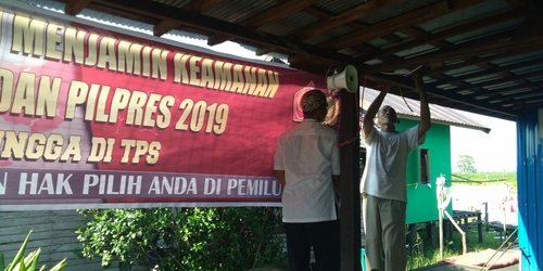 Aparat Desa Sungai Namang memasang spanduk tentang pemilu 2019 di berbagai tempat di wilayah Desa Sungai Namang.