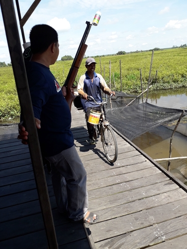 Salah satu cara warga dalam menangkap ikan dengan alat tembak di Desa Tambak Sari Panji Kec. Haur Gading Kab. Hulu Sungai Utara