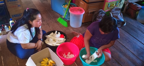 Fasdes berkunjung ke tempat ibu Yuliantin (45) yang berada di Desa Buntoi, Kecamatan Kahayan Hilir, Kabupaten Pulang Pisau, Kalimantan Tengah untuk melihat proses pembuatan keripik singkong, Rabu (10/4/2019).