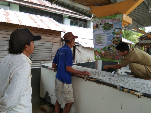 Pemasangan Poster Desa Peduli Gambut di tempat-tempat umum di Desa Sarang Burung Kuala, Kecamatan Jawai, Kabupaten Sambas, Kalimantan Barat, Selasa (23/4/2019).