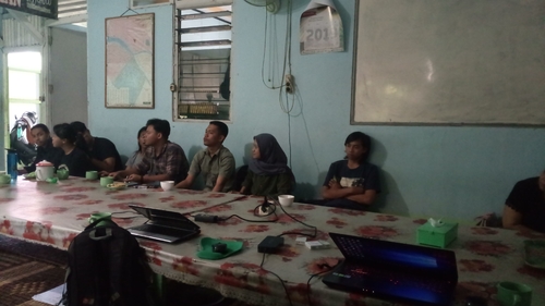 Diskusi dan nonton film bersama rekan mahasiswa pecinta alam dan aktivis penggiat lingkungan dalam rangka memperingati Hari Bumi di Sekretariat Walhi Kalbar, Pontianak, Selasa (23/4/2019).