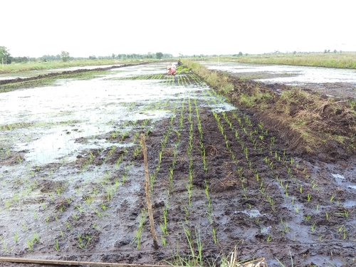 Kedatangan mereka dalam rangka diskusi dengab Pak Hendri dari PT. Sinar Pangan Indonesia sebagai pelaksana kegiatan penanaman padi musim tanam Asep. Setelah diskusi, kegiatan dilanjutkan ke lokasi demplot seluas 120 ha yang ada di sebelah kiri sekunder, untuk memeriksa secara langsung perkembangan kondisi lahan demplot.